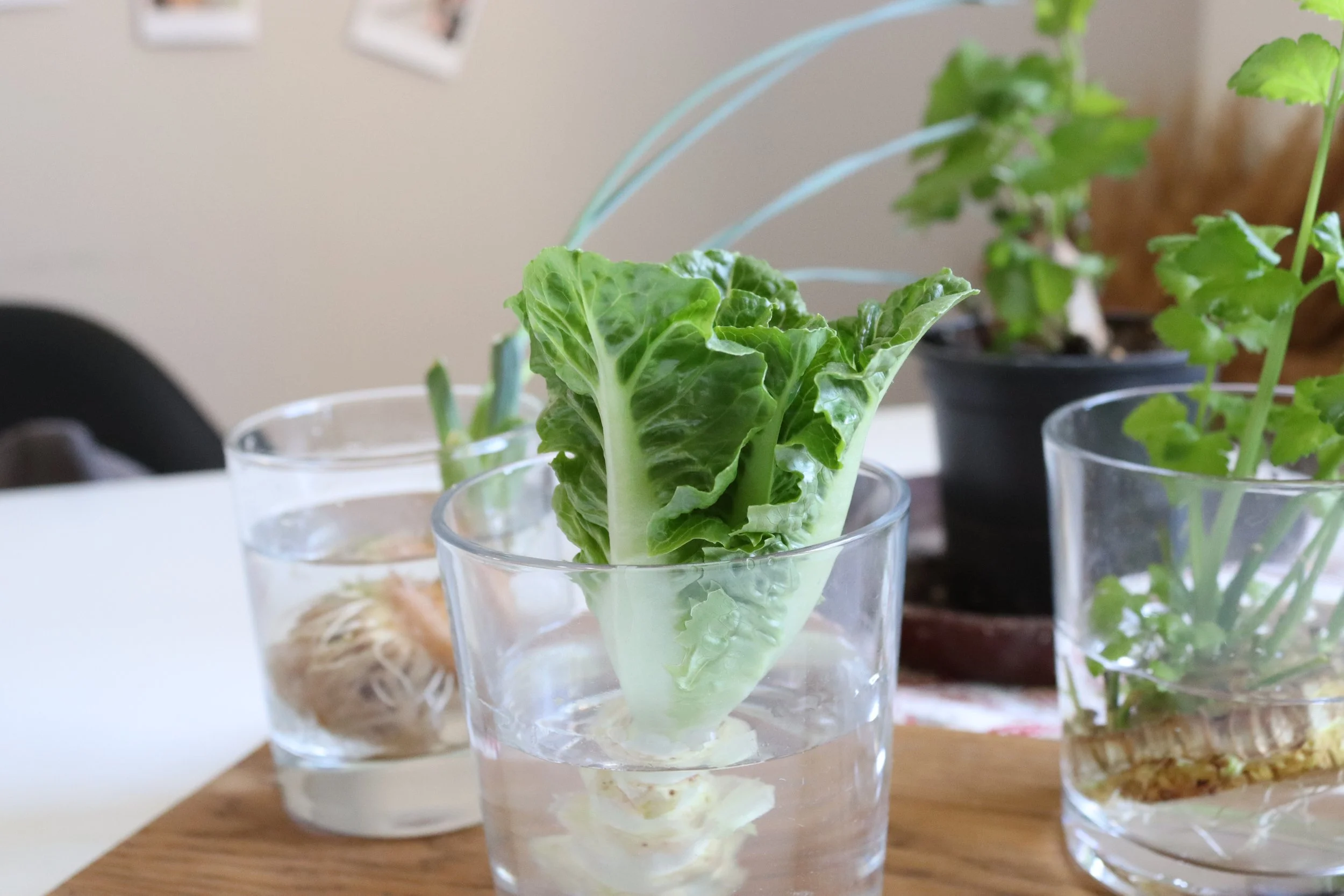 Aus den Wurzelresten von Salat & Co kannst du recht einfach frisches Grün heranzüchten
